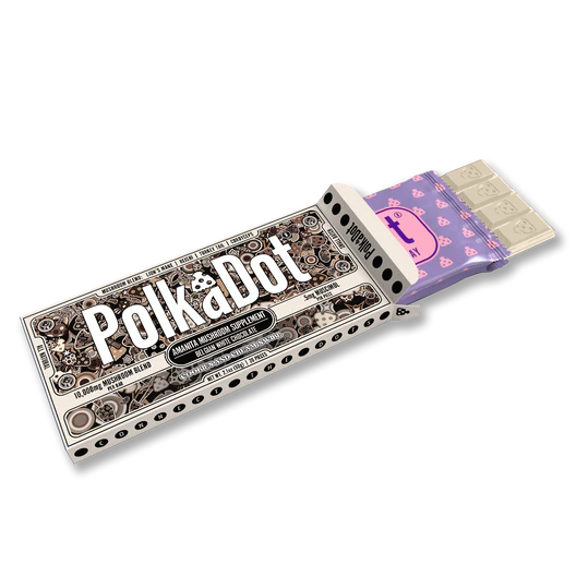 Now, let’s talk about the magic ingredient: mushroom chocolate! Each piece contains 0.5 mg of muscimol isolate from Amanita Muscaria, which adds a subtle, enchanting quality to this treat. With the inclusion of our proprietary functional organic polka blend, you’ll experience more than just a delightful flavor; you’ll discover the benefits of nature’s best fungi.